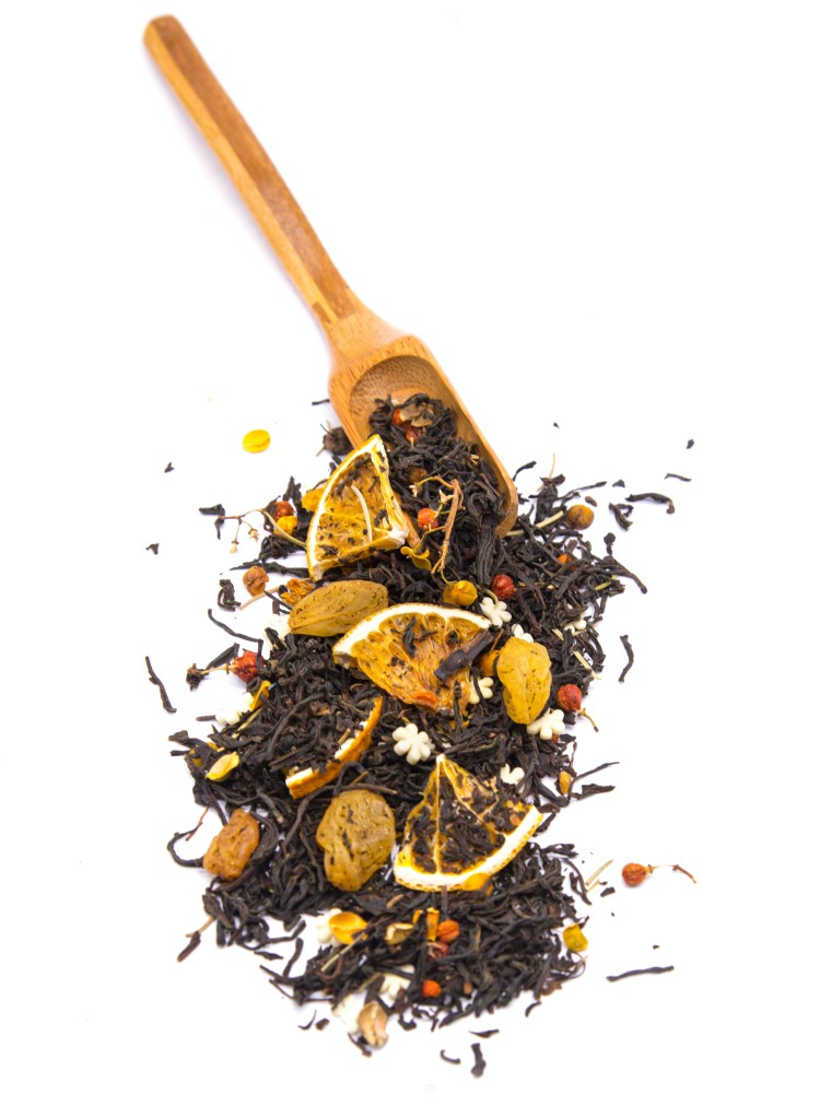 Это удивительная смесь черного чая с изюмом, цветами акации, апельсином, розмарином и нежным ароматом выпечки.